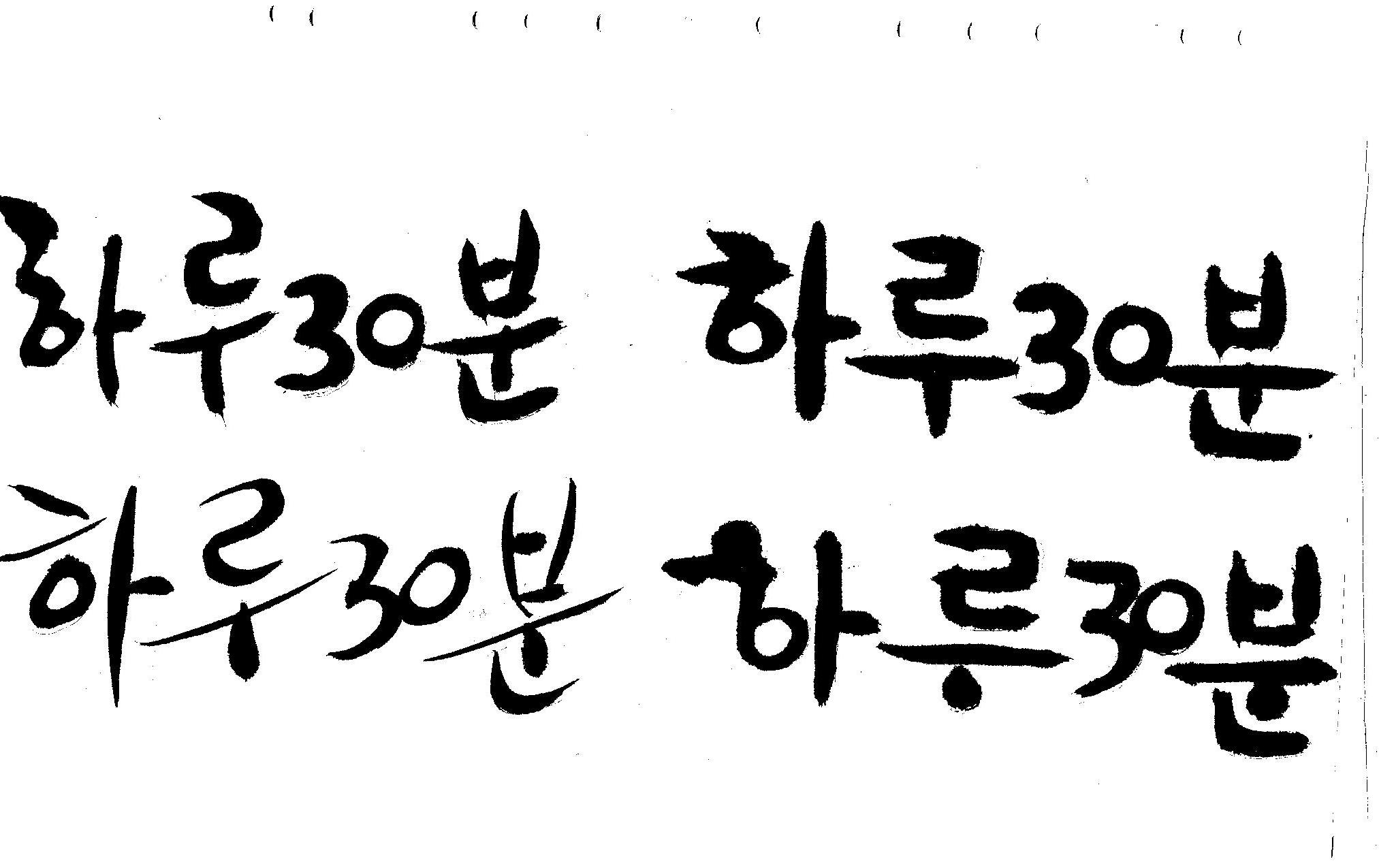 캘리부탁드려요 김철호 일반 0 6409 2008.12.31 13:43 > > 하루30분 <------- 이걸 캘리로 부탁드립니다 > 희망찬 새해 되세요... 스캔이 삐딱하게 되어 손좀 보셔야겠네요..